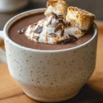 - Pour the hot chocolate into warmed mugs. I like to heat the cups briefly with hot water first so the drink stays warmer longer. Top with whipped cream, marshmallows, or a sprinkle of cocoa powder or cinnamon. For a fun twist, try a grating of orange zest or a few crunchy biscotti alongside — they’re perfect for dunking.